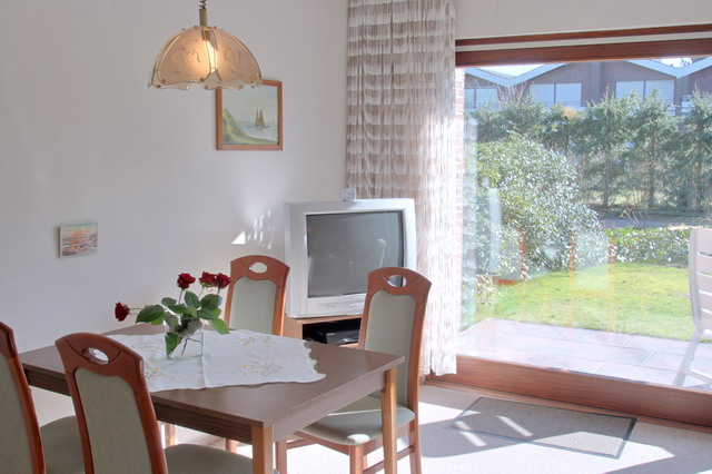 | Alle Ferienwohnungen sind mit identischen Möbeln ausgestattet. Sie bestehen aus einem Schlafzimmer mit Doppelbett, einem Kinderzimmer mit einem Einzelbett, einem Wohnzimmer mit Sitz- und Essecke sowie integrierter Kochnische, einem Duschbad und Flur. Die Wohnungen sind ca. 50 qm groß und haben einen Balkon bzw. eine Terrasse in Südlage. Das Wohnzimmer ist mit einem Sat-TV und Radio ausgestattet. In der Kochnische befinden sich das notwendige Geschirr, Töpfe, Kaffeemaschine, Wasserkocher, Toaster und Mikrowelle. |